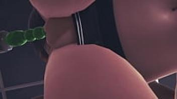 Sara enjoys Hentai Uncensored 3D, a Japanese Asian manga anime game, with two dildos and a squirt.