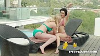 Curly Stacy Bloom and Babe Amaris Dicked by the poolside on PRIVATE com!