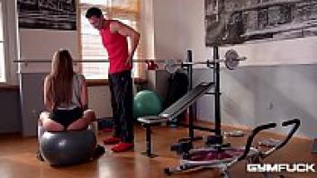 Milana Blanc, a moist, tight pussy girl who loves dildo balls, is in love at the gym.