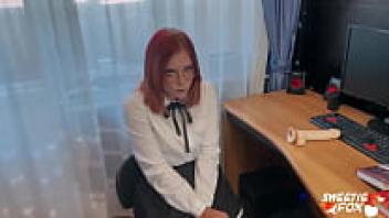 A female wearing glasses was caught masturbating Dildo while being face-loved and hard-loved.
