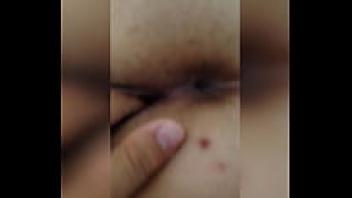 In her underwear, a pregnant wife masturbates her hairy, fat pussy. amateur.