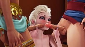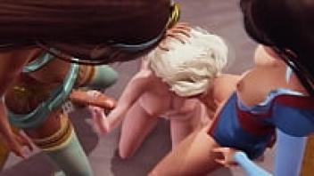 Mulan, Elsa, and Jasmine in the Disney Futa Threesome: 3D porn