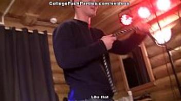 Two attractive and two amateur men are cruising around on a bus with a big reality love orgy.