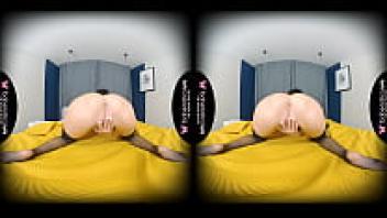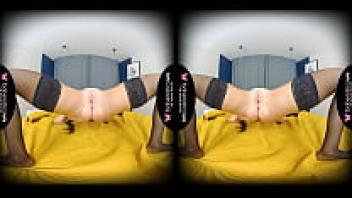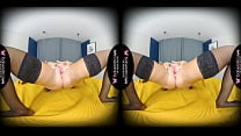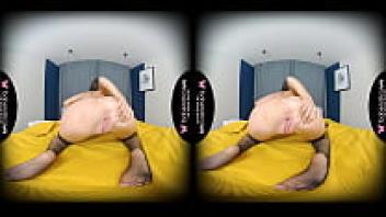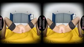 Brunette Katty West alone in virtual reality, fingering and playing with a toy