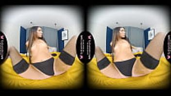 Tais Mersedes, a lone female, plays with her shaved pussy and flawless tits in virtual reality.