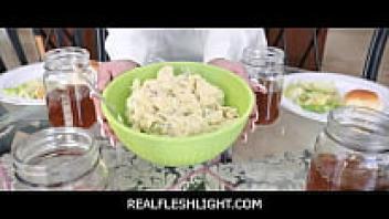 Rion King, Kenna James, and Kylie Kingston participate in FreeUse Family Group Sex After Dinner on RealFleshLight.