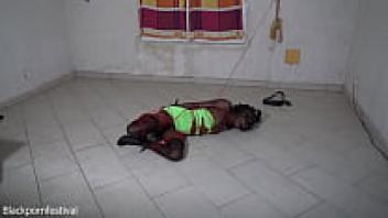 Ebony bondage: a gorgeous, slender black girl was gagged on her way home from the club.