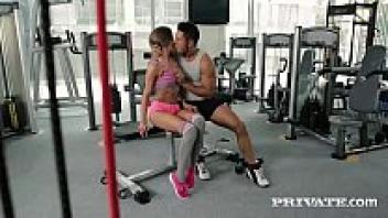 In the gym, Sarah Kay has an anal creampie.