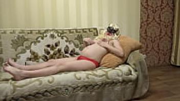 In her underwear, a pregnant wife masturbates her hairy, fat pussy. amateur.