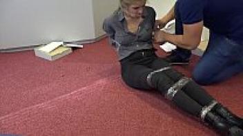 Sexy fetish model Caroline Pierce lesbian bondage and tied damsel in distress ro