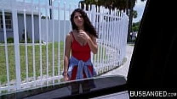 In JMac's van, a curvy, natural Latina is bouncing on cock.