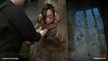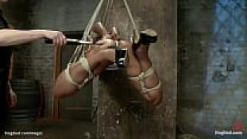 In severe bondage, Brunette rough-loved