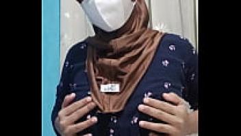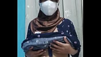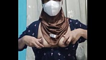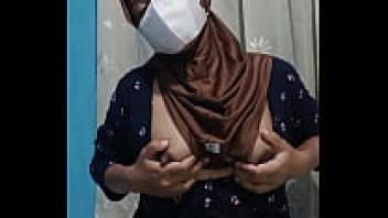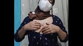 When the home is silent, a lovely student wearing a hijab masturbates.