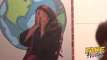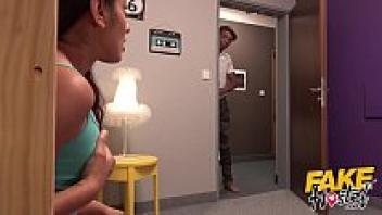 An Indian backpacker in a fake hostel engages in interracial group sex