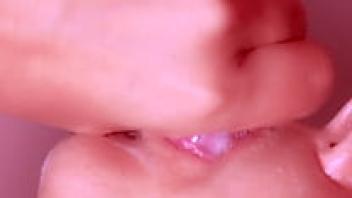 My new 18-year-old girlfriend has a fantastic amateur blowjob with a huge cock. Close-up Cumshot Bj |ALICExJAN|
