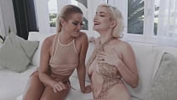 Rooms for Massage Lesbian oil massagers Kaisa Nord and Cherry Kiss are scissoring.