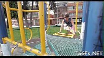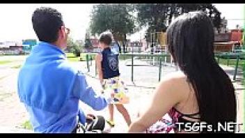 Sex massage from busty ladyboy shemale Green who rides him anal on top