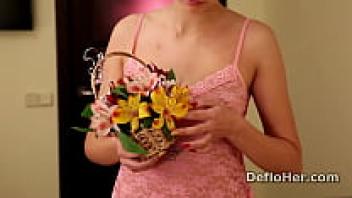 Audrey White, a teenage girl with short hair, enjoys masturbating in dogs.