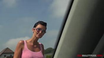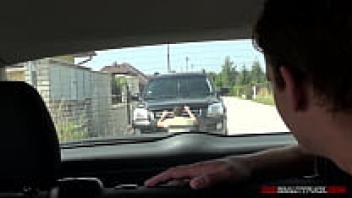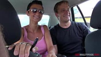Jena and Uma are picking up random people on the street to have sex in their car, including facial cum.