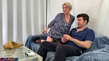 Before going to bed, the stepmother assists the stepson with his cock.