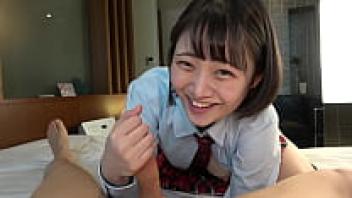 Japanese beauty. Creampie sex, uniform costume, gorgeous Nonomiya-chan, black hair, and large breasts. 1-1, uncensored. A shaved pussy