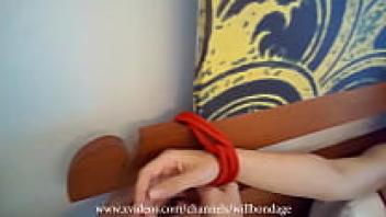 The bed has crimson ropes from Sofi Bondage. POV