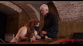 Chubby Redhead Caned on Her Huge Boobs