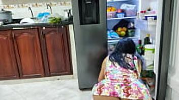 I record my stepmother's upskirt while she cleans the refrigerator.