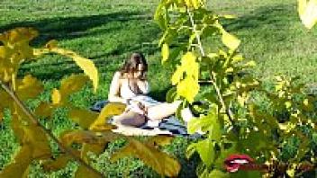 A voyeur in the park is adored by a busty teen.