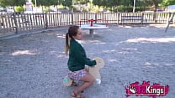 Muñequita, the midget babe, adores public blowjobs! One more with Potro