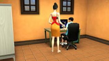 adoring a gorgeous Asian MILF maid after she snubs him | 3D porn