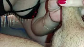 I cum in a hot milf's mouth while she sucks my dick. A real couple's homemade blowjob. POV close-up.