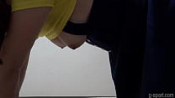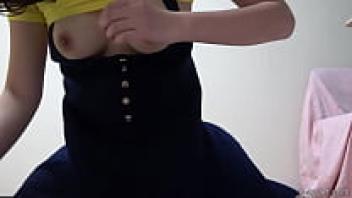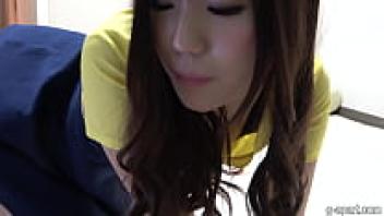 While cleaning, a Japanese girl's wedgie and tits were visible.