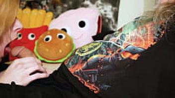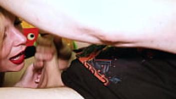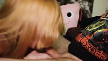 Roxy, an amateur blonde wife, gives a sloppy, wet blowjob that ends with a facial cumshot.