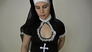 Nun, step-sister After giving a handjob, Anna likes in various positions and receives an oral creampie.
