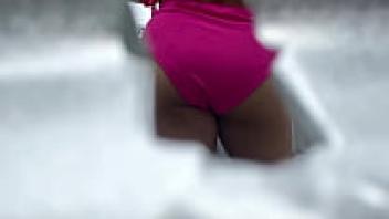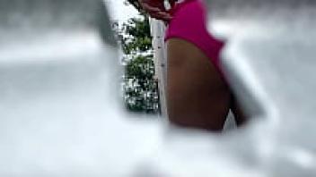 A swimming pool Outdoor masturbation by a young, slender girl who is a womaniser