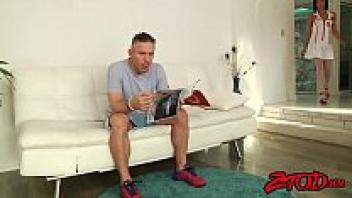 The fortunate neighbour enjoys drilling his attractive young brunette daughter, Rikki Love.