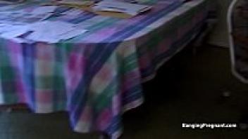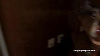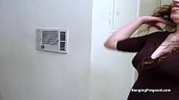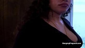 Nine-month-pregnant Ebony with saggy breasts