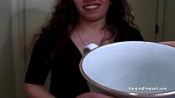 An really messy blowjob from a naughty pregnant woman with enormous breasts... what a naughty girl!