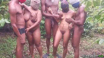 African Sex Trip: A Big White Cock Is Charmed by an Ebony Vixen Outside