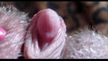 Dripping wet orgasm twice Close-up of a huge, hairy clit