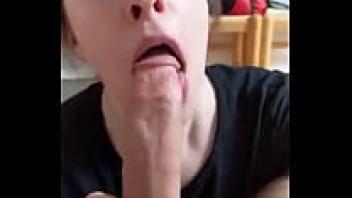 Blowjob with large cumshot from an amateur hot adolescent