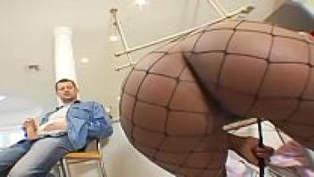 Ebony porn: A black stepdaughter witnesses her stepfather jerking away while wathing at her.