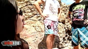 Terry Kemaco and Coralie Fever having anal sex on the beach