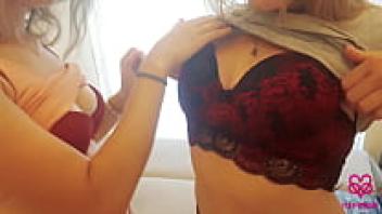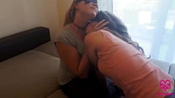 Adorable Step-Sisters Captured in a Kiss! Cum Play and Blowjob, an amateur trio