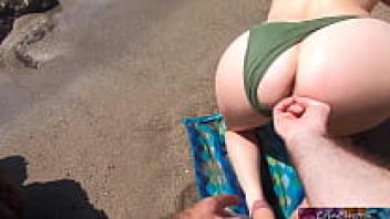 On a public beach, a girl masturbates her partner.