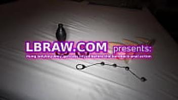 Anal beads are inserted by ladyboy Amy prior to barebacking.