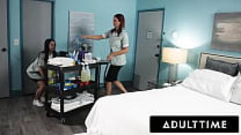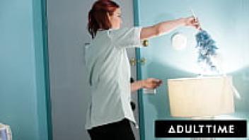 ADULT TIME: When her boss nearly catches them in a romantic moment, hot maid Alex Coal hides under the covers!