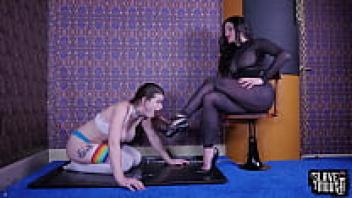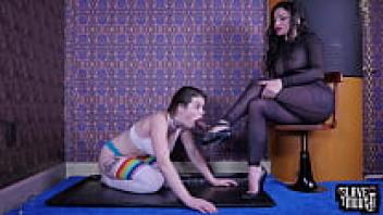 Teenage oral sex slave receives cold-hearted mistress face-loving.
