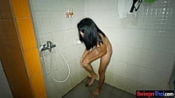 Asian ladyboy with a slim build A happy white friend and Kaow licking a white dick